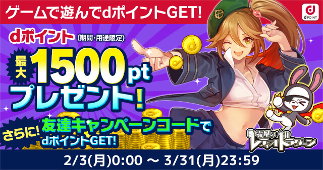 お題達成キャンペーンでは、ゼロドラのお題を全て達成するとdポイント(期間・用途限定)を最大1,500ptプレゼント!