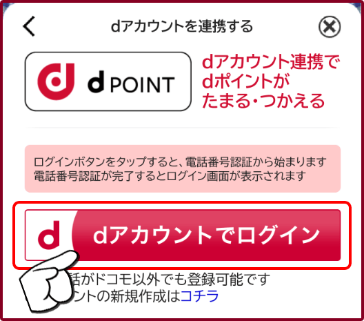 プ>dアカウントを連携する>「dアカウントで